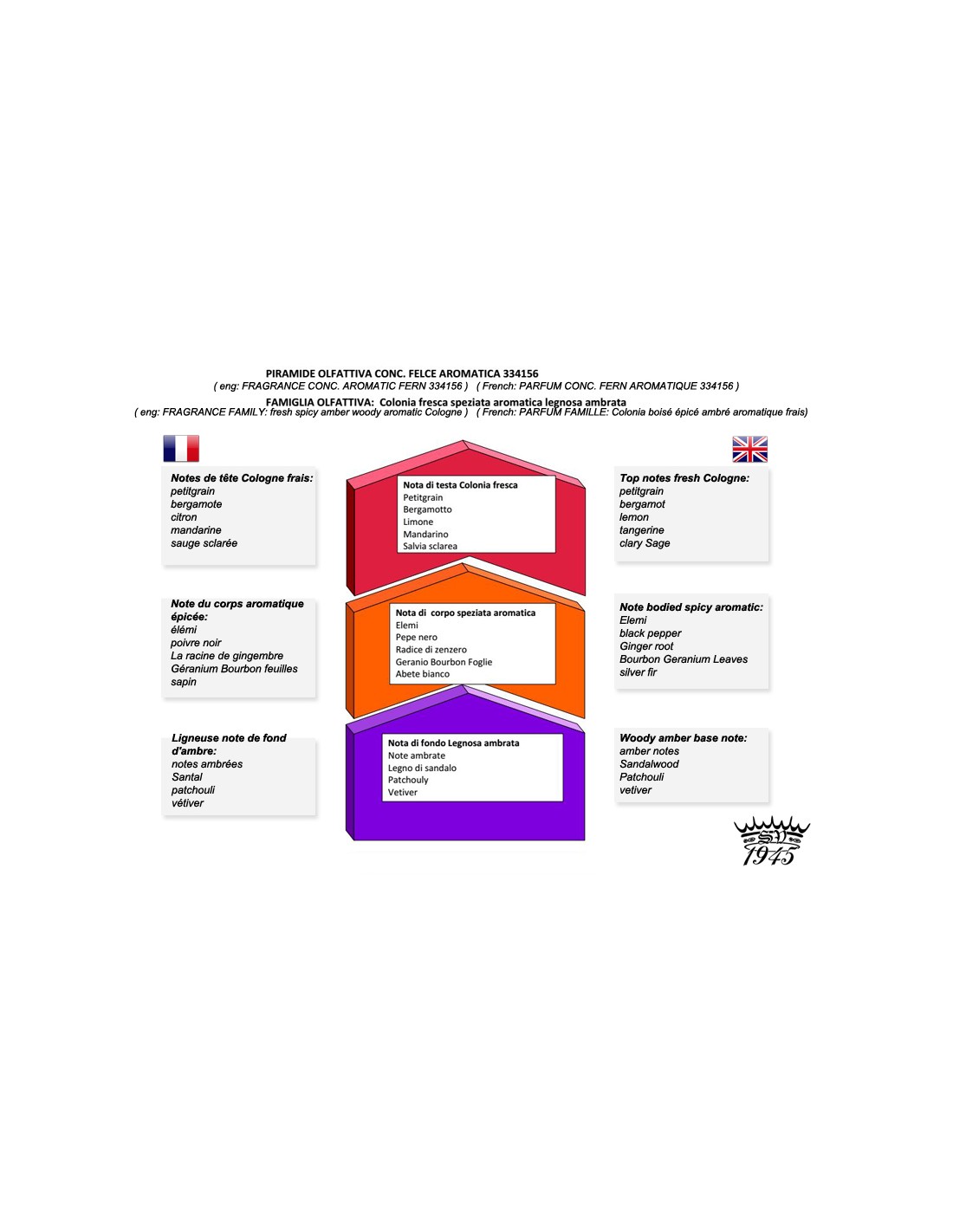 La fragancia se abre con las notas chispeantes de bergamota, limón y mandarina. Luego llega al corazón, caracterizado por el picante de la raíz de Jengibre y la Pimienta de Sichuan, todo ello acompañado por el frescor embriagador de las hojas del Geranio Bourbon. El fondo de la fragancia es una mezcla sensual de notas de ámbar, sándalo, pachulí y vetiver. La fragancia Helecho Aromático armoniza con los aromas de los aditivos naturales, creando una nota fresca e intensa que es apreciada y conocida desde hace años en el mundo del afeitado tradicional. La versión Beta 4.3 indica el curso de desarrollo del producto, nacido inicialmente como Beta 1.0 y mejorado paso a paso. La presencia del extracto de raíz de Dryopteris filix-mas (helecho macho) tiene la cualidad de reequilibrar la piel.
