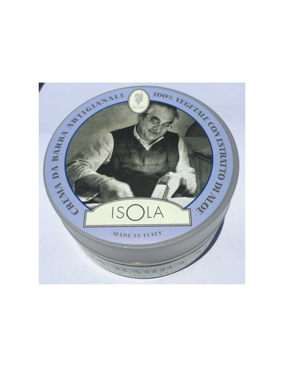 Crema de afeitar enriquecida con aloe vera. Aroma de la fragancia "Isola". Tarro de cristal de 150 ml.